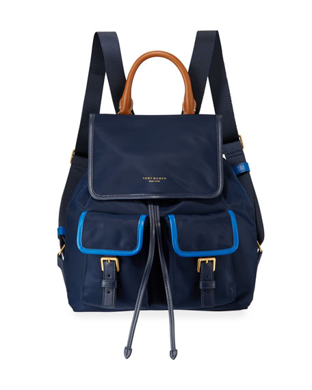 Shop new and gently used nylon tory burch backpacks at tradesy, the marketplace that makes designer resale easy. Tory burch ladies perry nylon backpack. Finished with a subtle logo accent, this tory burch backpack is a sleek version of a utilitarian style that's still roomy enough to keep up with all your daily adventures. Visit tory burch to shop for perry nylon flap backpack and more women's handbags.